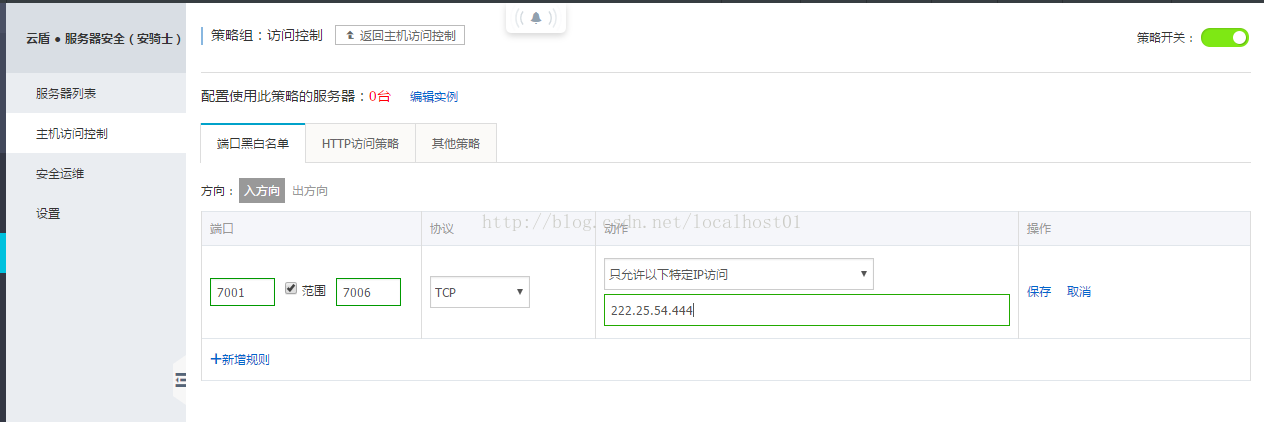 5.配置安全组,限制和允许ip访问特定端口,默认如下,表示无限制: