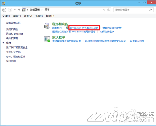 在“程序”对话框里点击“启用或关闭Windows功能”