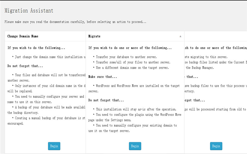 迁移——可以将你备份的文件和数据库发送到远程主机空间(也就是在上面设置的那个ftp),使用这个功能前,请先在远程主机空间同样安装wordpress 和 wordpress move,然后将上面的 ftp 远程备份路径设置为该插件下的 backup 目录,这样,当发送完备份文件以后,就可以访问远程主机空间的 wordpress move,通过“还原”功能进行还原,就实现了网站的搬家。