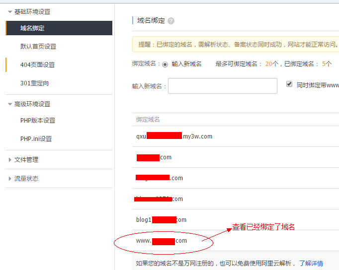 如下图,登录主机控制面板查看域名绑定中(用FTP信息登录即可),已经绑定了自己的域名。还是会偶尔提示错误