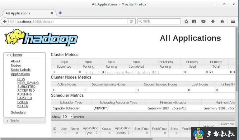 打开浏览器访问http://localhost:8088,验证yarn是否配置成功