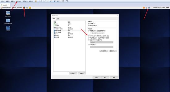 首先确保你的 centos 系统可以正常的上网,你可以查看桌面右上角的网络图标,若显示红叉则表明未联网,可点击选择可用网络,也可以使用桌面左上角的火狐浏览器输入网址验证是否网络连接正常。如果还是无法上网,检查虚拟机的设置,选用 nat 模式,或者上网百度解决。