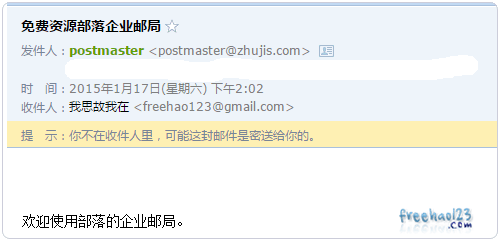 3、测试使用万网免费企业邮箱向Gmail和腾讯邮箱发送邮件可以正常接收。